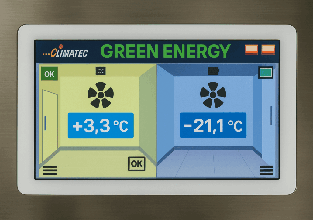 Diseñamos e implantamos cámaras frigoríficas CO₂ enfocadas a reducir la huella ambiental y disminuir el consumo energético. Utilizamos tecnología transcrítica o subcrítica para lograr un funcionamiento más eficiente, estable y sostenible que los sistemas tradicionales. Adaptamos cada proyecto a la carga térmica y al tipo de actividad, obteniendo instalaciones de alto rendimiento, menor impacto ambiental y un coste operativo significativamente más bajo.